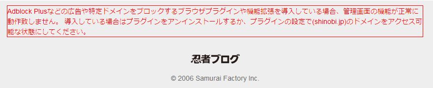 adblockなどのオプションツールを入れていると、忍者ブログは投稿・編集の機能もうまく動きません。公式のお知らせの通り、アドレスを許可するか、アドオンのアンインストールをして利用してください